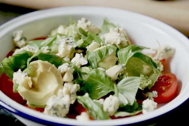 Step 6: cut open the avocado and scoop out the flesh into the salad bowl.